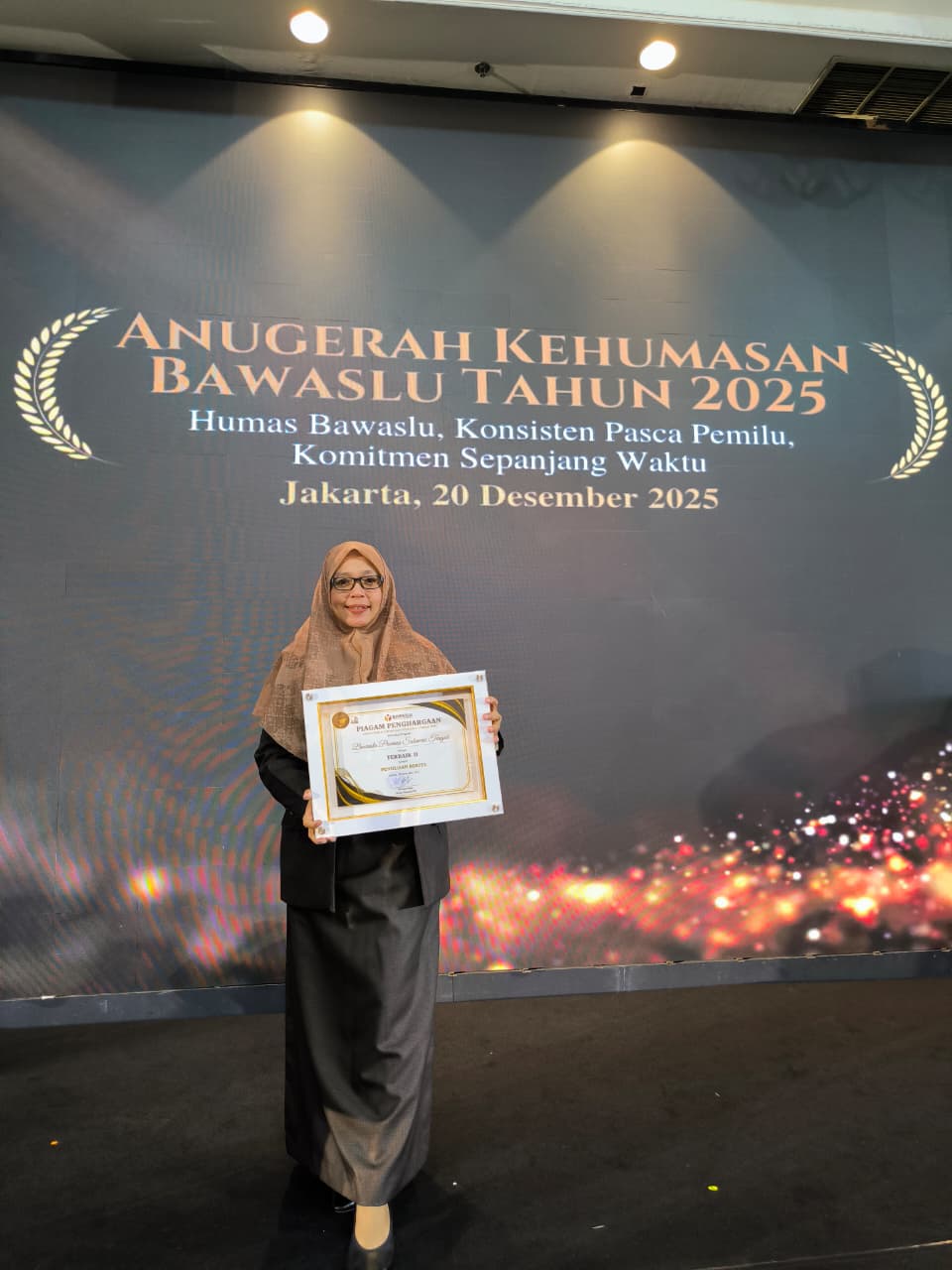Ia berharap capaian tersebut tidak menjadi titik akhir, melainkan momentum untuk terus memperkuat peran kehumasan sebagai garda terdepan dalam membangun kepercayaan masyarakat terhadap Bawaslu.