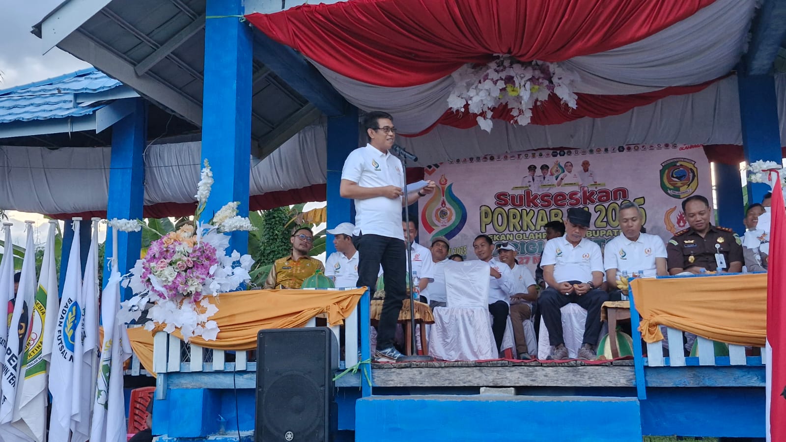 Dalam sambutannya, Bupati menyampaikan PORKAB Ke-VI Tahun ini bukan sekedar ajang pertandingan tetapi merupakan momentum penting dalam proses pembinaan pencarian dan pematangan atlet-atlet terbaik daerah yang tahun ini mengusung tema “Mewujudkan Atlet Berprestasi Menuju Porprov X Sulteng 2026” Tema ini sangat tepat karena kita tengah memasuki fase persiapan intensif menuju Porprov yang akan datang.