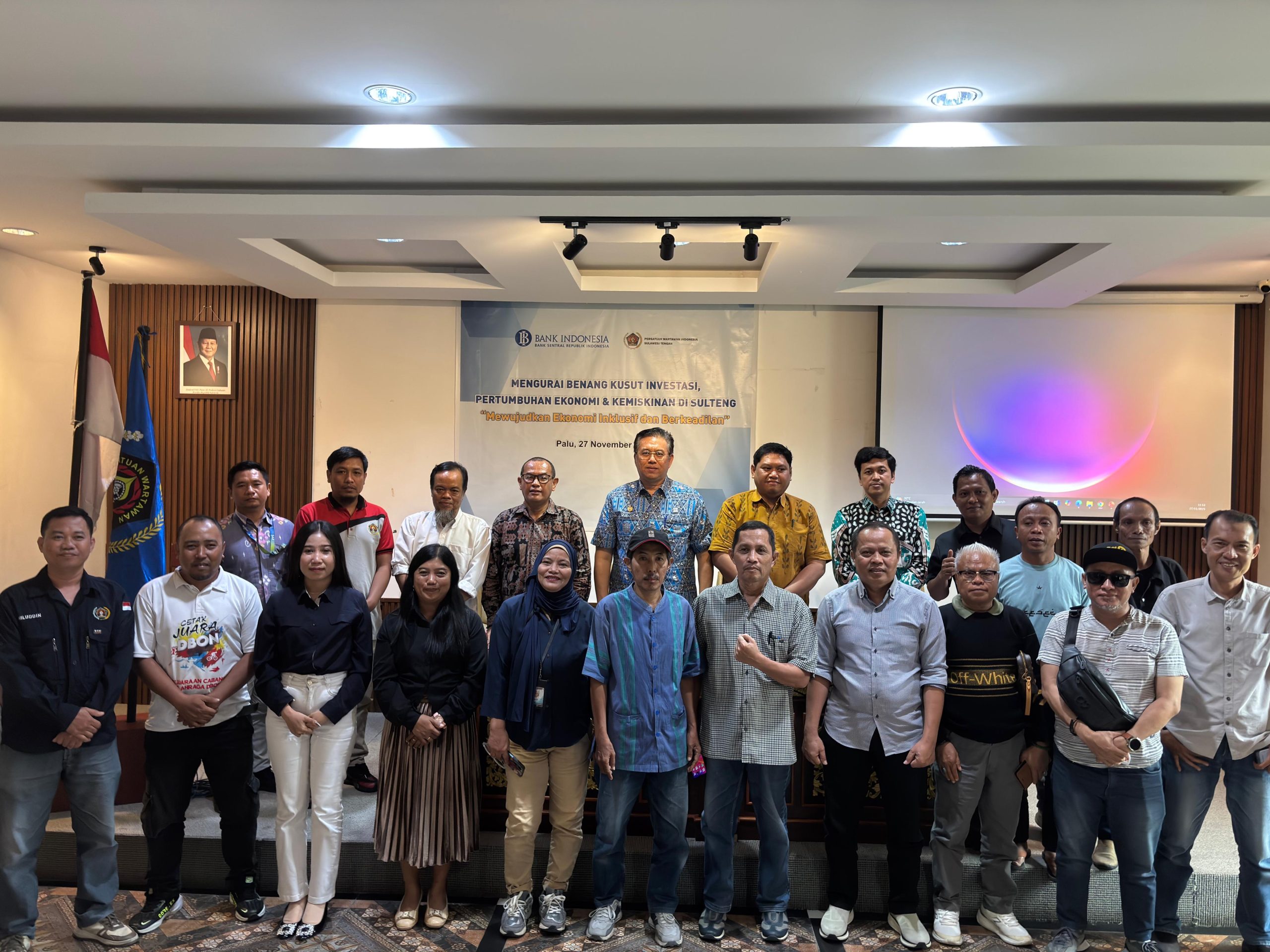 Diskusi yang mengangkat tema Mengurai Benang Kusut Investasi, Pertumbuhan Ekonomi dan Kemiskinan di Sulteng, Untuk Mewujudkan Ekonomi Inklusif dan Berkeadilan, dihadiri sejumlah wartawan.
