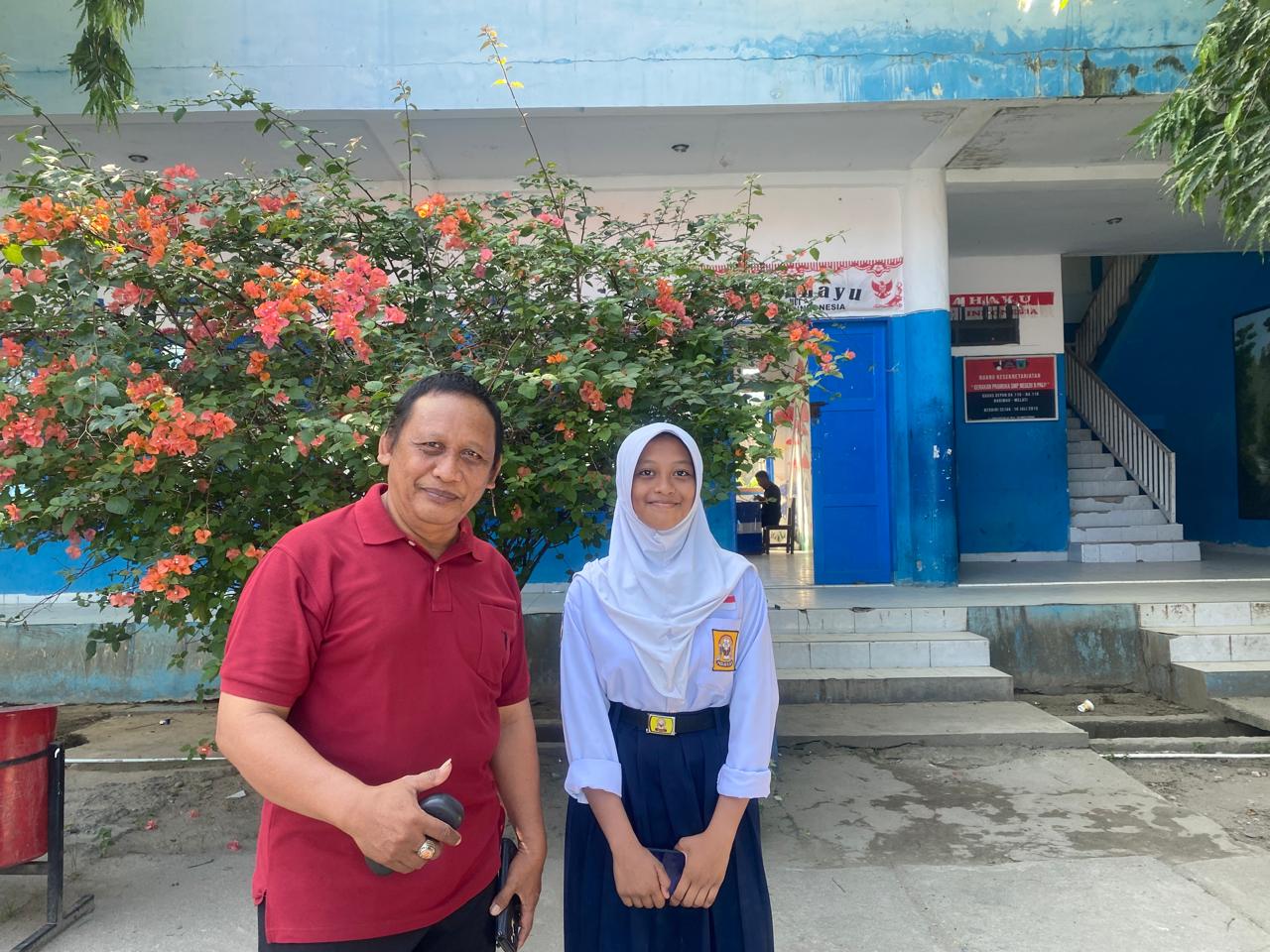 ” Hari ini yang datang terima rapor Ayah saya. Selama ini memang Ayah yang selalu mengambilkan rapor, ” Tutur Sakina