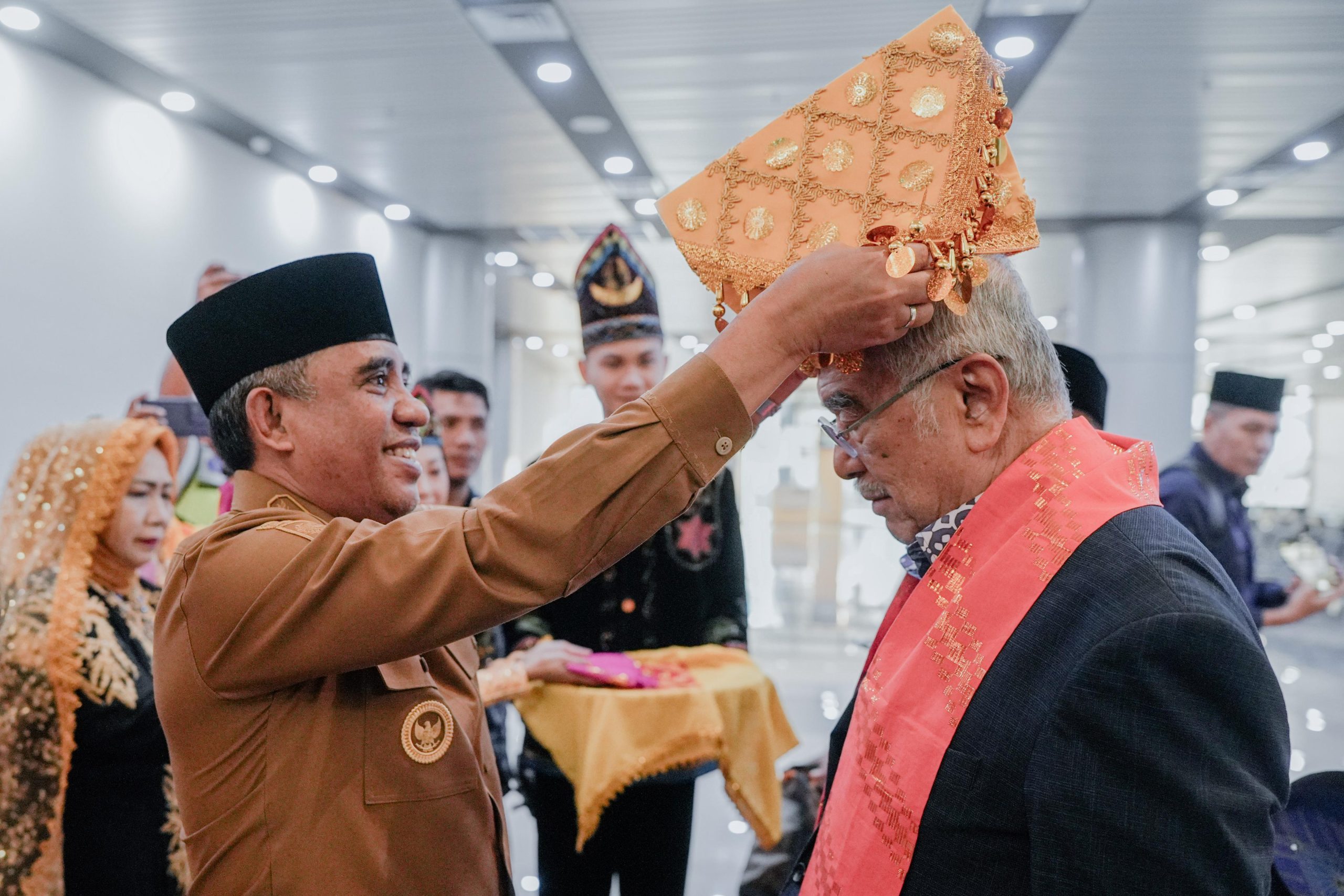 Dalam prosesi penyambutan tersebut, Gubernur Anwar Hafid secara langsung memakaikan siga, penutup kepala khas Sulawesi Tengah, kepada Presiden DMDI. Prosesi ini menjadi simbol penghormatan sekaligus penerimaan secara adat kepada tamu kehormatan yang berkunjung ke Bumi Tadulako.