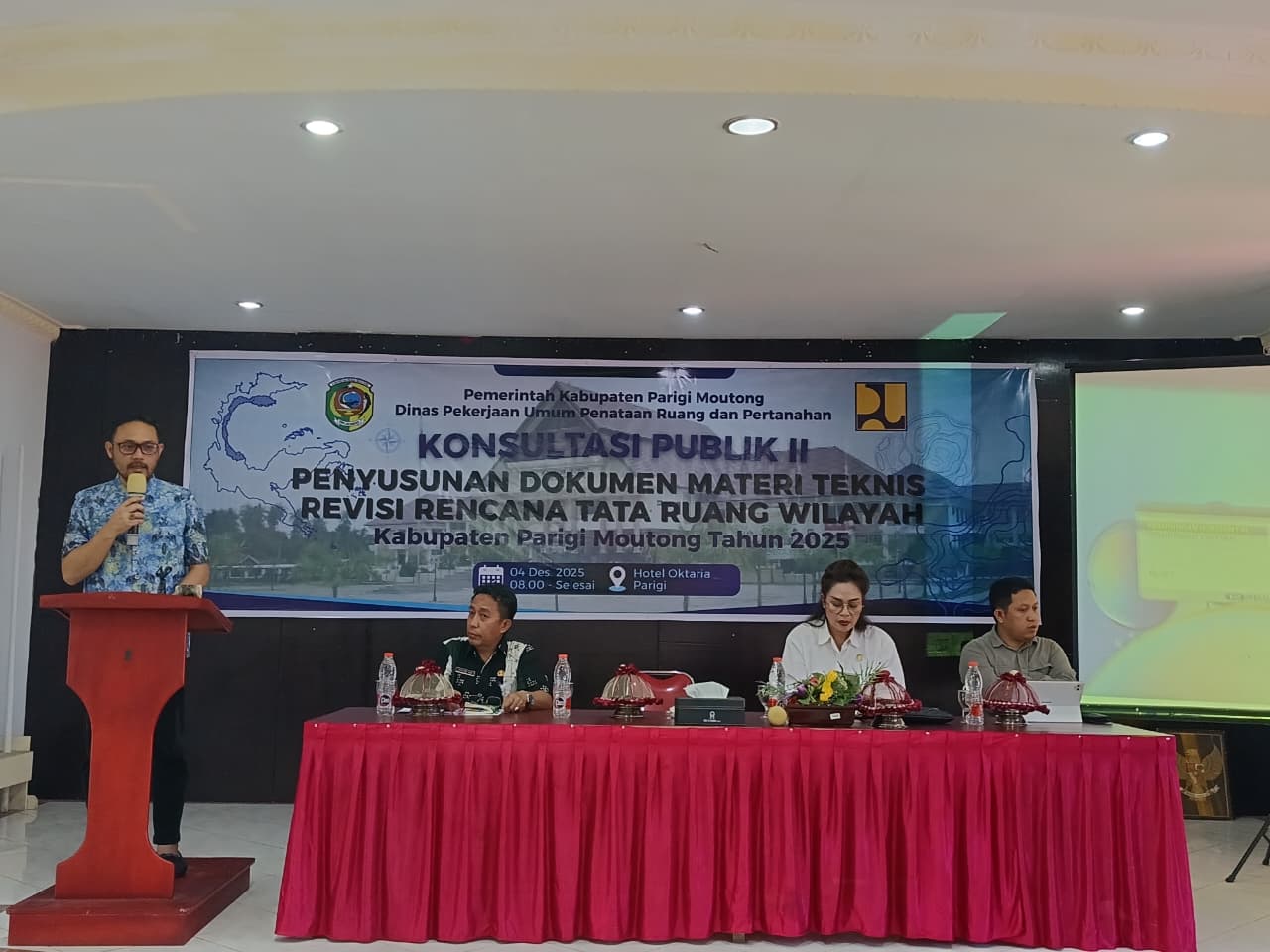 PARIMO, PIJARSULTENG.ID, – Kantor Bada Pertanahan (BPN) Kantah Parigi Moutong (Parimo) menghadiri kegiatan Konsultasi Publik II terkait penyusunan Dokumen Materi Teknis Revisi Rencana Tata Ruang Wilayah (RTRW) Kabupaten Parimo Tahun 2025, yang dilaksanakan di Hotel Oktaria, Parigi.
