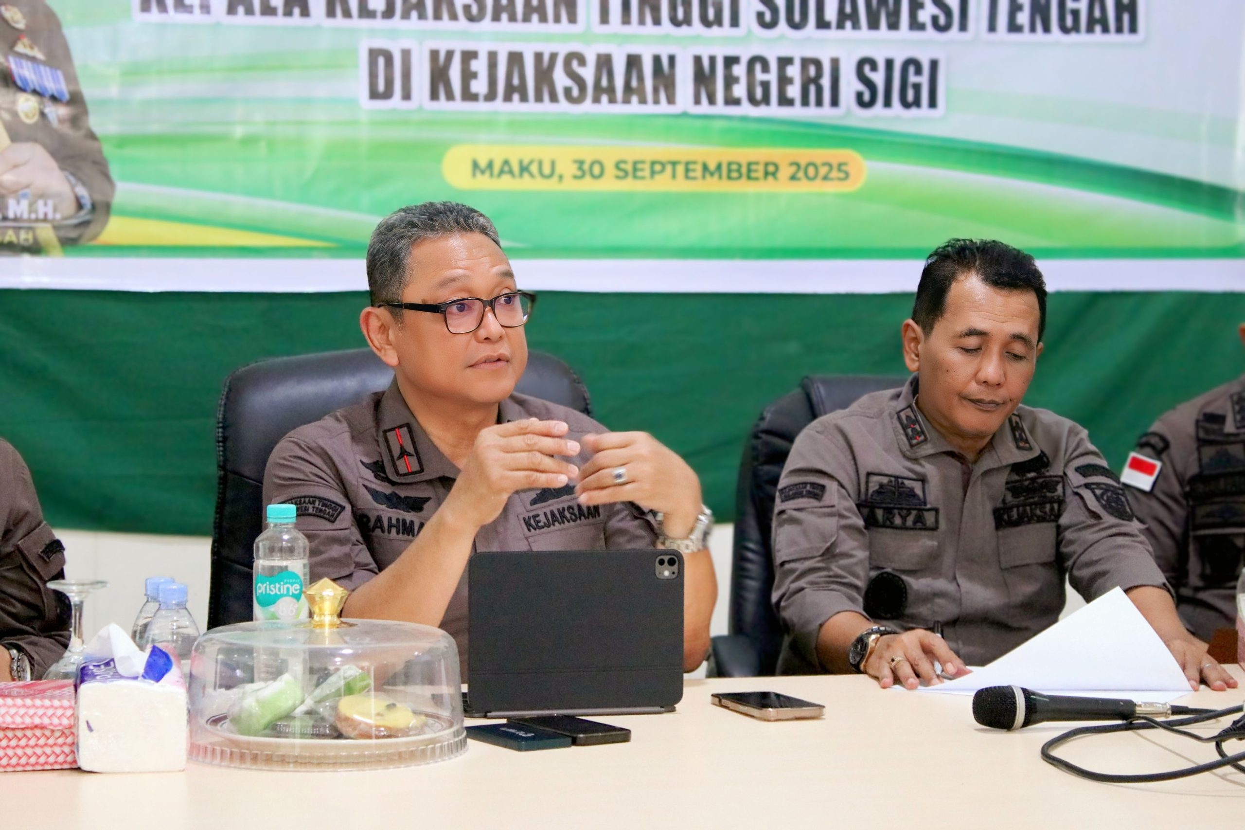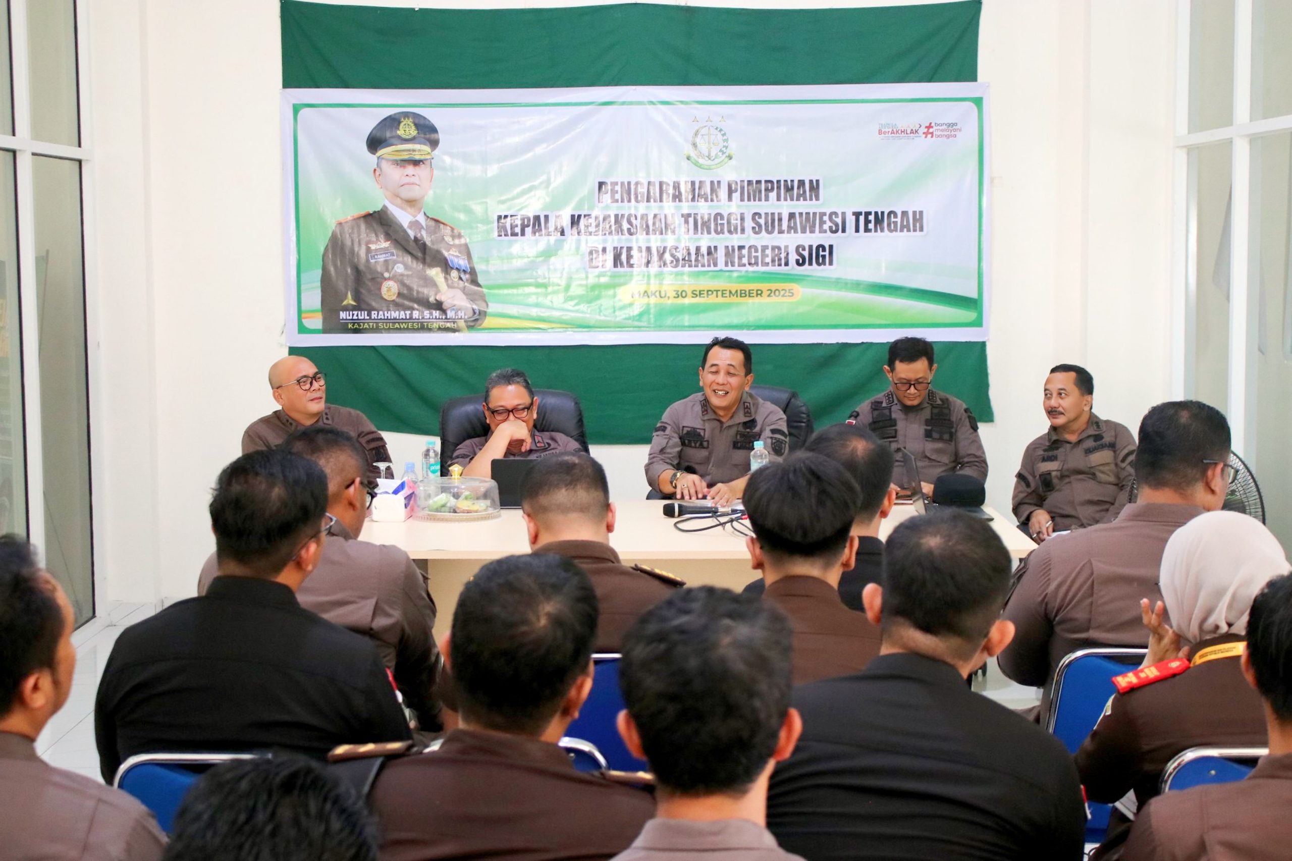 PALU. PIJARSULTENG. ID, – Kepala Kejaksaan Tinggi Sulawesi Tengah (Sulteng),Nuzul Rahmat R, S.H., M.H., didampingi Asintel Ardi Surianto, S.H., M.H, Asbin Fitri Zulfahmi, S.H., M.H, Kabag TU Kiki Yonata, S.H., M.H melaksanakan kunjungan kerja ke Kejaksaan Negeri Sigi.