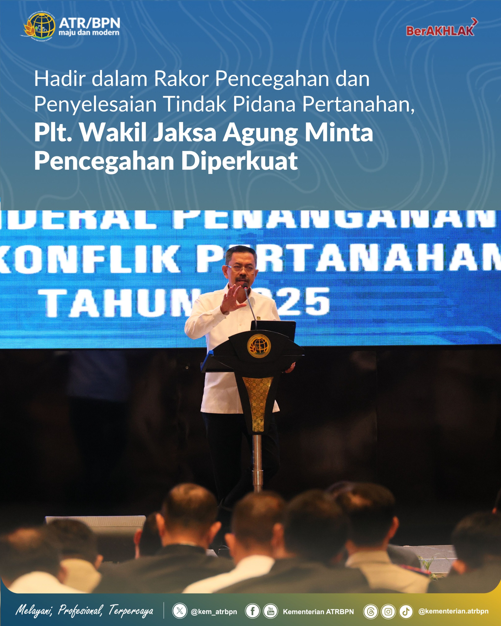 JAKARTA. PIJARSULTENG.ID– Rapat Koordinasi (Rakor) Pencegahan dan Penyelesaian Tindak Pidana Pertanahan Tahun 2025, Menteri Agraria dan Tata Ruang/Kepala Badan Pertanahan Nasional (ATR/BPN), Nusron Wahid, menyematkan pin emas dan memberikan piagam penghargaan kepada pihak yang berperan dalam pencegahan serta penyelesaian tindak pidana pertanahan. Apresiasi ini diberikan kepada 74 pihak yang terdiri dari jajaran Kementerian ATR/BPN, Kepolisian, dan Kejaksaan dari 21 provinsi di Indonesia.