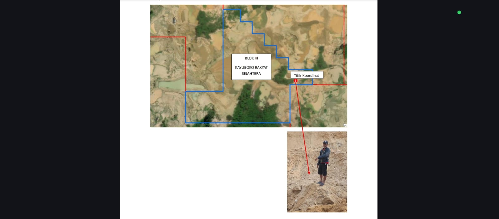 Sultan mengatakan sebagai gambaran Titik Koordinat kejadian berada di sisi Timur di ujung dalam wilayah Izin Pertambangan Rakyat Blok III Kayuboko.