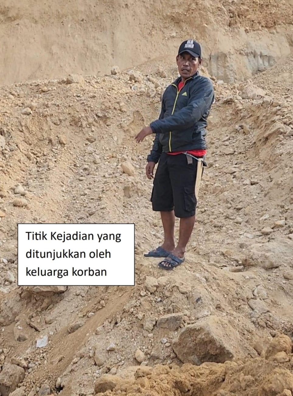 “Seketika setelah kejadian, Keluarga Korban yang juga berada tidak jauh dari lokasi kejadian meminta kepada masyarakat dan Koperasi untuk melakukan Evakuasi korban dengan dibantu alat Excavator terhadap posisi korban yang ditunjukan oleh keluarga, setelah dianggap telah diketahui kemudian dilakukan penggalian manual dengan menggunakan tangan oleh bantuan Keluarga korban di Lokasi kejadian,”ungkapnya.
