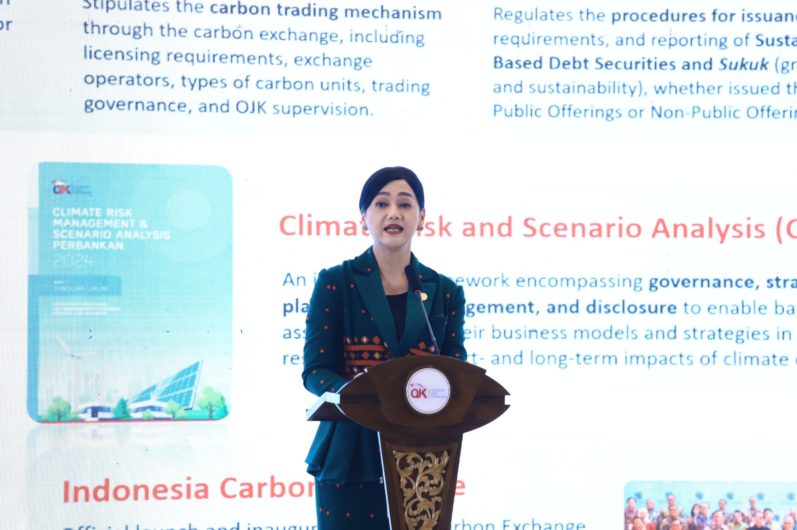 Pejabat Sementara Ketua Dewan Komisioner OJK, Friderica Widyasari Dewi, mengatakan transformasi sistem keuangan Indonesia agar selaras dengan agenda iklim merupakan bagian integral dari strategi pembangunan nasional.