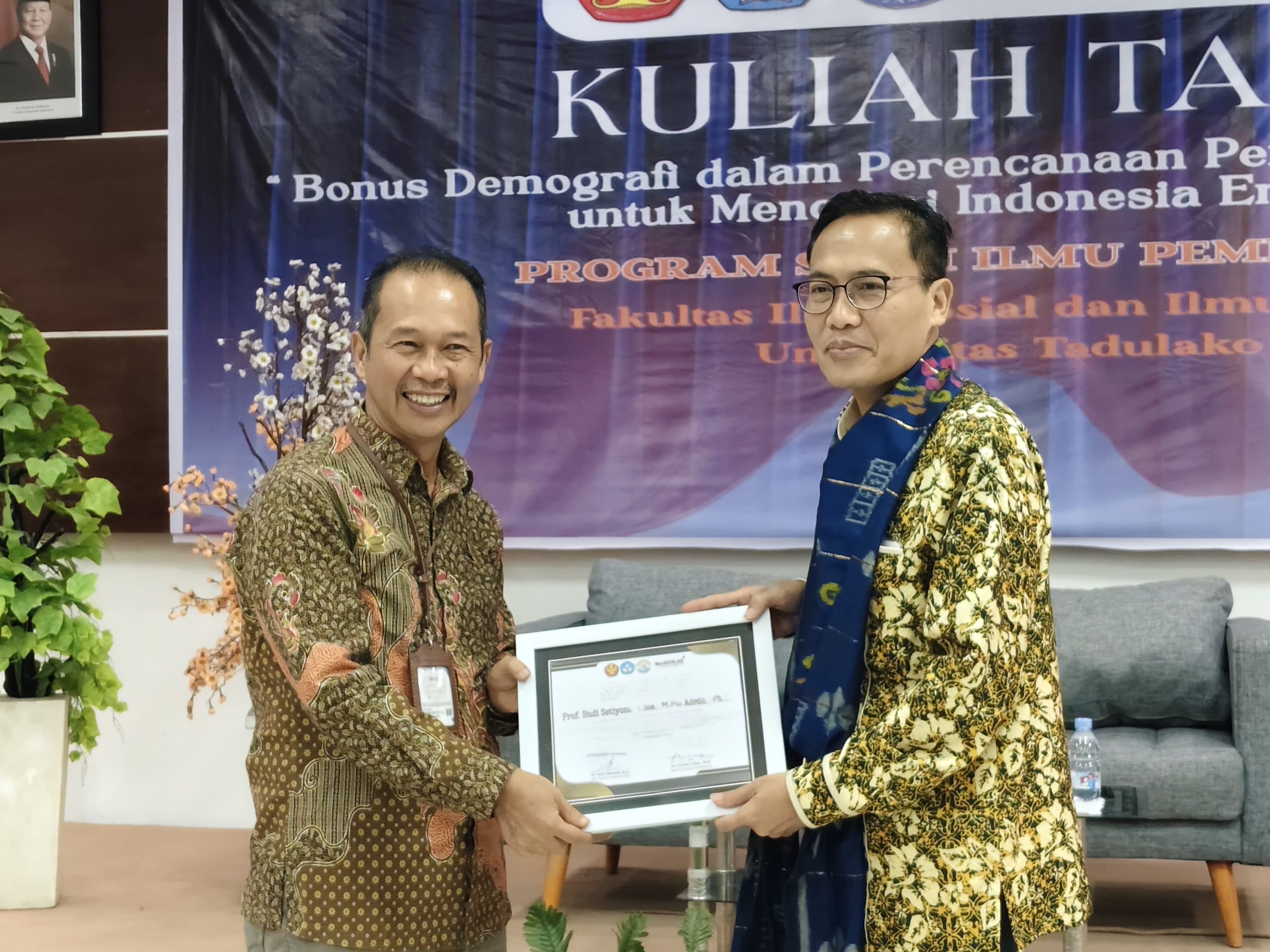 PALU. PIJARSULTENG.ID,- Bonus demografi hanya akan menjadi peluang singkat, bahkan dapat berubah menjadi “boncos” jika pemerintah dan generasi muda tidak siap dalam perencanaan pembangunan. Pesan itu menjadi sorotan utama Sekretaris Utama Kemendukbangga/BKKBN, Prof. Budi Setiyono, S.Soc., M.Pol.Admin., Ph.D, saat tampil sebagai narasumber pada Kegiatan Kuliah Tamu Demografi dalam Perencanaan Pembangunan Pemerintah untuk Mencapai Indonesia Emas 2045 yang digelar Program Studi Ilmu Pemerintahan, Fakultas Ilmu Sosial dan Ilmu Politik Universitas Tadulako, Jumat (21/11/2025).